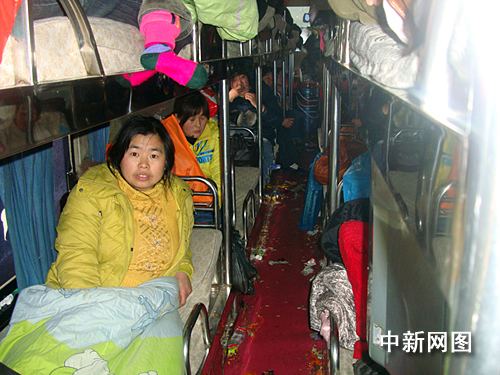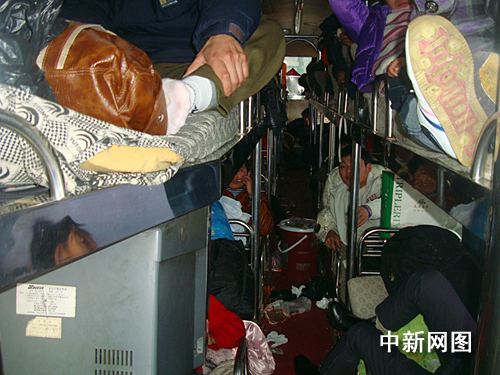 民警走上客车发现这是一辆严重超员的大客车。经检查,民警发现车厢内黑压压一片,整个车厢被“塞”满了人,有的坐在通道上,有的一张床上坐了两、三个人,整个车厢水泄不通,充斥着刺鼻的气味,初步估计有60余人。