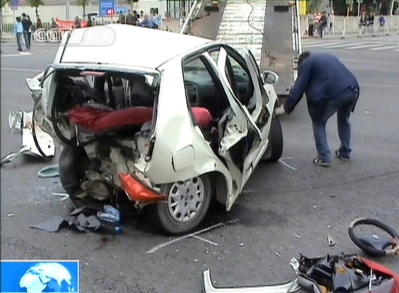 5时35分,“英菲尼迪”由北向南行至朝阳区建国门外大街永安里路口时,将正等待红绿灯的菲亚特轿车撞出路口,致其又与一辆转弯的公交车相撞,造成“菲亚特”车内一家3口两死一伤。