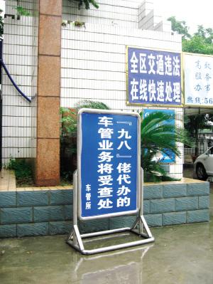 10月21日,南宁车管所江北工作站,警示牌提醒车主按正规手续办理业务。
