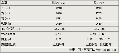 从与FRV的参数对比来看,骏捷Cross车型从长、宽、高方面全面增大,而轴距依然是2580mm,在动力上,骏捷Cross先期搭载的是4G18S 1.6L发动机,配合五速手动变速器。后续也很可能推出1.3L、1.5L排量车型,新车预计售价将7-8万元之间。