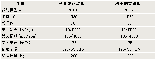虽然被称作是运动版,但这款车型在动力方面仍然搭载铃木M16A 1.6L发动机,最大功率为70kw,最大扭矩为135N.m。从发动机的性能参数方面可以看出,利亚纳运动版与普通车型没有丝毫变化。同样是1200kg的整备质量和15寸轮胎,整车的最高车速依然是175km/h,可以说整车的性能并没有“运动化”。