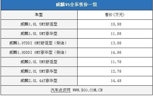9月8日奇瑞旗下四大品牌之一威麟正式宣布投入运营,旗下的第一款车型威麟V5 1.9L柴油版本也将于当天正式登场。威麟V5全系共有7款车型,售价10.98-14.98万元,具体售价如下表: