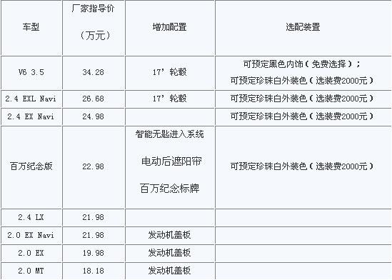 同时,纪念雅阁100万辆下线,本次推出的2010款雅阁2.4EX车型将被命名为“雅阁百万纪念版”,除了享受2010款雅阁的全新的设计和配置外,还将拥有为庆祝雅阁100万辆下线特别设计的“百万纪念标牌”,并增加Smart Entry智能进入系统以及一键式电动后遮阳帘,为用户带来尊贵感和自豪感。据悉,由于数量有限,本次推出的“百万纪念版”雅阁计划采用限量生产以及发售的形式推出。
