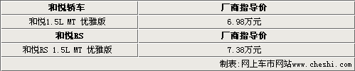 一直以性价比著称的江淮和悦系列,凭借产品自身的优势在市场取得非常优秀的成绩,但从市场了解的情况来看,江淮和悦在4S店经常会出现车型不全的情况。近日,网上车市网站获悉,江淮汽车将在5月份推出全新和悦优雅版车型,其中和悦优雅版的厂家指导价为6.98万元,和悦RS 优雅版的厂家指导价为7.38万元。