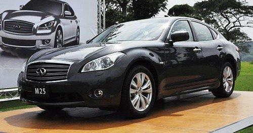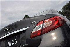近日英菲尼迪M25车型在国内曝光,据悉展车已经到店,随着近期M37的曝光,基本可以确定年内进口国内的M系列车型为M25和M37。M25将采用与G25相同的2.5L V6发动机,最大功率可达到235马力,最大扭矩达到了253N·m。而M37则搭载的是同系列VQ37VHR发动机,最大功率328马力,峰值扭矩365N·m。(文/汽车之家梁思辰)