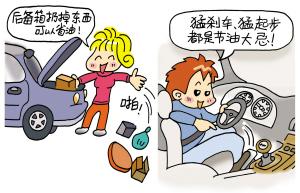 有些朋友开车喜欢急加速、急停,这样也不利于省油。老司机说,行车中猛刹车、猛起步都是节油的大忌。猛踩油门,见空就抢,油耗都会大大增加,而且事实上也快不了多少。急刹车不仅耗油,还很容易造成刹车片过热,影响行车安全。