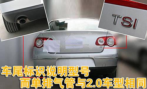车尾“TSI”的标识表明了迈腾1.4TSI的车型身份,由于迈腾是“B”级车,所以尾部并没有出现速腾1.4TSI尾部“1.4”的数字标识。此外,其车尾左下方的排气管并没有采用迈腾1.8TSI的双排气管设计,而是采用与迈腾2.0车型相同的单排气管设计。