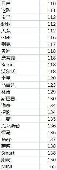 “我们没有统计101和102之间的差异,或是101和103的差别,” JD Power的汽车研究副总裁David Sargent在向汽车记者协会介绍时说。