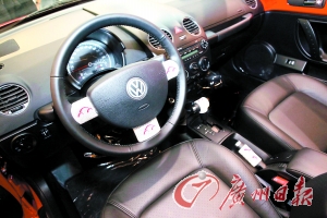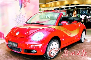 水晶版新甲壳虫敞篷车的车标、方向盘、手刹柄、变速箱手柄等地方都镶嵌着施华洛世奇水晶,在新甲壳虫敞篷车红色车身的映衬下,更显得璀璨夺目。大众进口汽车有关负责人介绍说,此次展示活动由大众进口汽车和施华洛世奇联手打造,全程将持续一个多月,覆盖天津、上海、深圳三大城市。