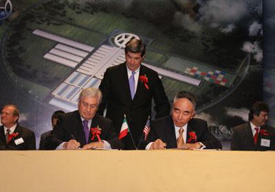 现场,阿拉巴马州州长Robert Riley、正道汽车公司董事长仰融、意大利乔治亚罗公司创始人乔治亚罗,及相关300名嘉宾参加了现场签约仪式。并包括美国、欧洲和中国的多家媒体。