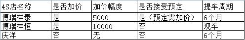 附:部分4S店的加价情况(以下均为普通版高尔夫6的加价幅度,所有加价情况均为销售人员口头传达,可能会发生变化)