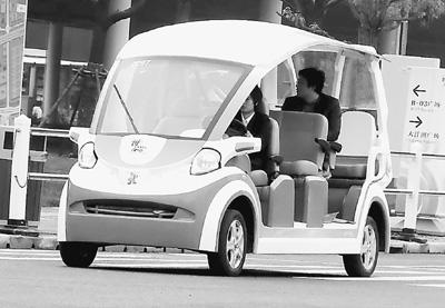 上海世博园内运行着太阳能、新能源汽车、LED照明工程等低碳应用项目。图为燃料电池观光车正在世博园区载客运行。