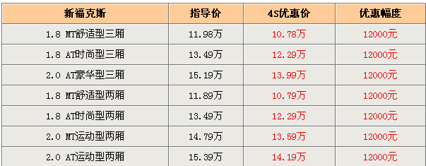 笔者日前走访北京长安福特4S店时获悉,目前新福克斯优惠又提升2000元,全系优惠1.2万元,由于新嘉年华的上市,商家为了留出库存故加大了新福克斯的让利。