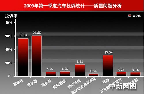 中新网4月24日电 日前,中国质量协会用户委员会、车人网联合发布了2009年一季度中国汽车产品质量与服务质量分析报告。统计显示,本季度的投诉中有关异响和轮胎的投诉仍呈上升趋势。