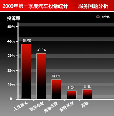中新网4月24日电 日前,中国质量协会用户委员会、车人网联合发布了2009年一季度中国汽车产品质量与服务质量分析报告。统计显示,在关于汽车产品服务质量的投诉中,久修不好仍是引发消费者投诉厂家服务质量的最主要原因。