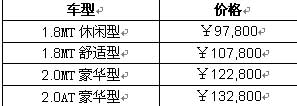 据悉,本次推出的Santana Vista志俊共有1.8MT休闲型、1.8MT舒适型、2.0MT豪华型、2.0AT豪华型等4个车型,价格区间为9.78万-13.28万。