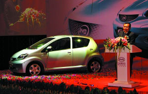 比亚迪汽车销售有限责任公司总经理夏治冰昨日表示,F0是国家实施新汽车消费税后上市的第一款小排量车型。(陆原)