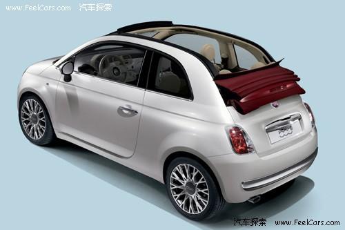 2010款菲亚特500C基于类似五十年代的经典软顶设计,加入时尚、创新的新元素,车顶与后挡风玻璃部分连成一体。当软篷折叠时,内置高位刹车灯的屋檐式扰流器会与车顶一同滑落。软篷提供象牙白、香槟红、经典黑三种颜色选择,菲亚特500C还拥有全新设计的多幅式星形轮圈,复古又动感。