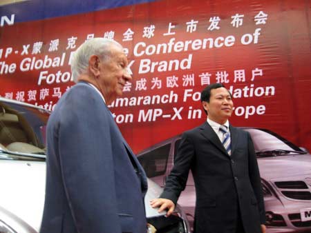 萨马兰奇先生亲自到场蒙派克全球上市仪式会场,表示了祝贺,并与福田汽车总经理王金玉一起揭开了蒙派克的红幕。萨翁指出,中国有很多优秀的产品,就像中国的体育一样,在世界范围内迅速崛起。相信08年奥运会后,一批有实力的中国企业将真正成为世界名牌。随后,萨马兰奇代表基金会欣然接受了MP-X蒙派克的钥匙,成为了该款车型在欧洲的第一位用户。萨马兰奇还亲笔题词“Trust the Power of R.P.China(相信中国力量)”送给福田汽车。