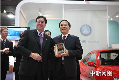 北美车展组委会主席卡尔•加里亚拉将唯一的技术奖项授予了吉利董事长李书福,卡尔•加里亚拉说:节能、环保与安全是人类孜孜以求的目标,北美车展见证了一个汽车企业两年内的惊人进步,吉利人用两年的时间带来了BMBS技术,开创了汽车安全技术的新领域,发明、创新和实践特别贡献大奖颁给李书福和他的公司就是对他们不断追求技术进步的最好奖励。
