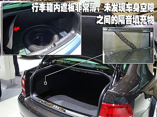 斯柯达昊锐应该说是这三款车型中最为厚道的一款,在其行李箱内部的包裹材料与外侧车身之间的空隙中,记者看到了非常厚实的一层隔音棉作为填充。
