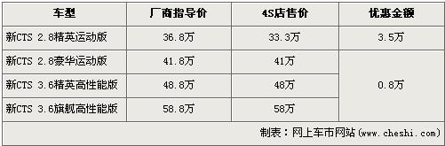 在美国素有“驾驶者之车”美誉的凯迪拉克CTS豪华运动轿车,是一款将动力性、操控性、舒适性完美结合的经典产品,其的售价区间为36.8万元-58.8万元。近日据网上车市价格数据监测显示,凯迪拉克新CTS最高优惠仍为3万元,具体详情看下表: