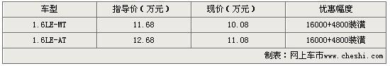 经销商人员表示,购买别克新凯越车型除了可以得到1.6万元价格优惠外,还可以得到4800元的汽车装饰。优惠后的新凯越1.6LE-MT售价仅为10.08万。销售人员还表示,目前新凯越各款车型的货源较为充足,颜色齐全,自动挡型多,手动的比较吃紧。