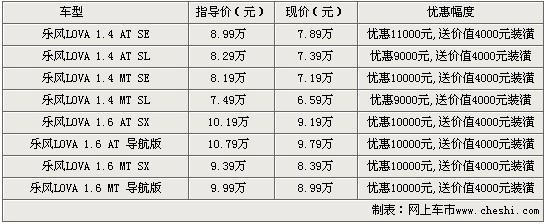据雪佛兰LOVA“乐风”销售人员表示,购买雪佛兰LOVA“乐风”车型除了可以得到10000元的价格优惠外,还可以得到价值4000元的装潢大礼包。优惠后的雪佛兰乐风LOVA 1.4 SL MT仅售6.59万元。