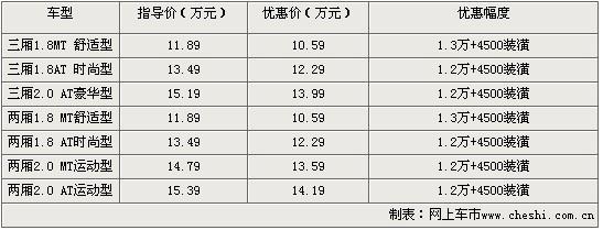 福克斯的设计来自欧洲福特,欧洲式的简洁是其带给人们的第一印象,线条略显平淡,明朗的腰线、宽厚的轮眉,使得福克斯整体感觉变得更为强壮,在视觉效果上就更显车身稳重,但还福克斯所传达的运动风格依旧很强烈。两厢版看上去更加的运动,三厢版更家用化一些。,目前上海地区购买福克斯部分车型可以得到1.3万元的价格优惠。具体车型售价见下表: