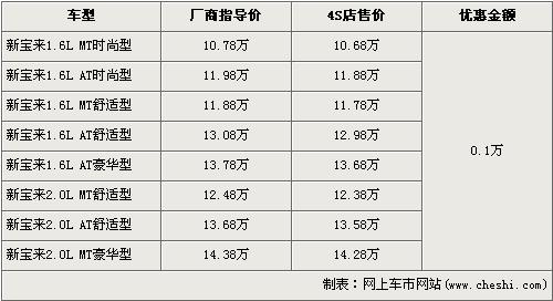 新宝来是一汽大众去年10月上市的新车型,也是一汽大众近期受关注度最高的车型。新宝来分为1.6L及2.0L两个排量,全系车型多达7个,价格区间为10.78万元-14.38万元。近期根据网上车市价格监测系统显示,新宝来全系优惠1000元,具体详情请看下表: