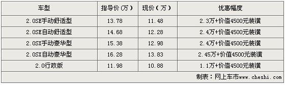 据雪佛兰经销商表示,购买景程全系除了可以得到2.45万元的价格优惠外,还可以得到4500元的装潢大礼包和车上人员险。