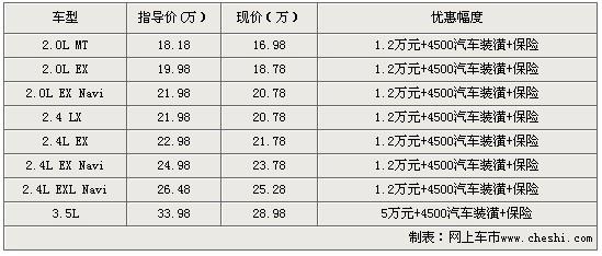 据经销商表示,购买八代雅阁除了可以得到5万元的价格优惠外,还可以得到4500元的装潢大礼包和保险。优惠后的八代雅阁2.0 MT售价仅为16.98万。