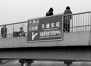 据了解,关于“山寨指路牌”的帖子最早出现在天通苑生活社区网的论坛里,题目为“金睛火眼辨真伪:大家来投票”,发帖者“飞扬”称,让网友看看“这块安装在城铁立水桥站天桥上的牌子是真是假”,并贴出图片。