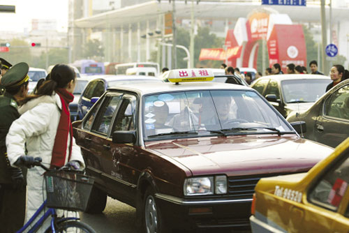 据了解,目前上下班高峰时段已经有部分出租车实行同向拼载,但这还远远不能满足高峰时期的需求。如何最大程度上提高出租车的运力,减少城市污染,解决打车难?许多出租车司机和乘客认为,出租车拼载完全可以更大范围地实施。