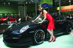 保时捷第一次以厂商名义参加广州车展便给车迷带来惊喜。911GT2——保时捷911系列性能之王的高性能跑车,采用后轮驱动搭配6速手动变速箱,100公里/每小时加速仅需3.7秒,最高时速为329公里。引人注目的前端大进气口和尾翼的设计,是这款车型的典型特征。此外,配备独家Porsche Design装备的黑色限量版Cayman S硬顶跑车全球仅生产777辆,起售价为99.8万人民币。