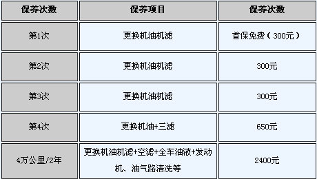 6.保养费。假设一年跑2万公里,厂家规定每5000公里保养一次,一年则需要做保养4次。由维修点处可知,每隔两万公里三滤全换费用为650元,三次常规保养(只更换机油机滤)300元,,此外每4万公里或两年要做一次全车彻底大保养(更换机油机滤+空滤+全车油液+发动机、油气路清洗等)为2400元,那么平均一年保养费用花费大概2425元左右。