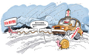 雪天行车,首要是慢,其次是和前车保持足够的距离,再有要提前刹车,当发现和前车的距离在缩短,不管什么原因都要马上收油减速并将脚放在刹车踏板上准备刹车,千万别有侥幸心理,麻痹大意。