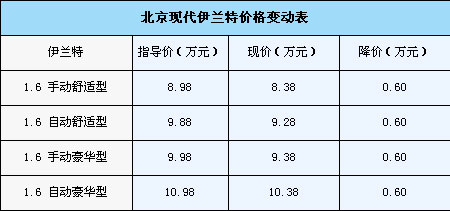 目前,北京的几处经销商处伊兰特有着最高6000元的优惠,并赠送部分装饰用品。
