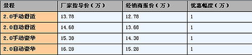 近日从雪佛兰4S店了解到:景程现全系优惠1万元,但手动挡基本没有现车需预定。