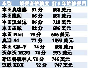 作为一种耐用消费品,车辆的耐用性(使用成本)已经成为购车的主要衡量指标。近日,美国财经杂志《福布斯》评出了10大经久耐用车型(Ten Toughest Cars)。评比标准涉及消费者信赖度,新车故障率,前5年维修费用及安全性能等综合表现,结果日系车大获全胜。除了奥迪A4、沃尔沃XC90外,排名最耐用性前10名中有8款是日本车系,美国本土车型则全军覆没。其中本田一家就占了6款,奥德赛和雅阁分别位于排行榜的前两位,这或许可以解释日系车在全球范围内的成功。(王灿彬)