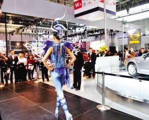 ①VOLVO在这次车展上,开了两个非常特别的展区。一个展示上衣和裤子;一个用电子系统教你画画,看来厂家为了销售自己的理念越来越“不务正业”了。