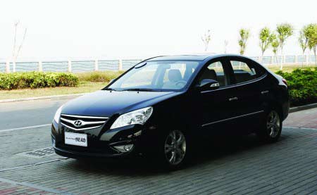 这是一辆黑色1.6升手动挡顶级版悦动,对它外观的好感来自两件事:一是送某领导开会(他的专车另有用途了),他眼前一亮,问这是什么车啊?当听说是只售10.98万元的悦动,不禁啧啧称道:“好车啊!”二是刚开入小区,一群邻居正围着另一辆新车谈论,忽然有个美女指着我开的悦动说:“你们看这车漂亮不!”