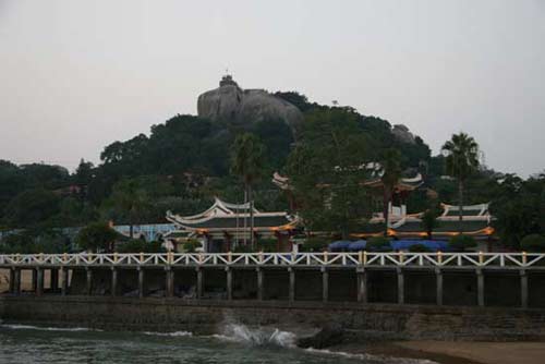 经过藏经阁可以直接上寺后的五老峰,虽然不能与庐山的五老峰相提并论,但是一路走来却也别有风趣,除了众多的古迹和大量的摩崖石刻,能够将厦大一览无遗实在是畅快淋漓,俯瞰远处的海景,海天一色,巍峨的胡里山炮台还在庄严的守卫着疆土。南普陀的素菜也是久负盛名,融合了宫廷素菜的精细、民间素菜的天然和寺院素菜的纯正,烹饪技法讲究和谐统一,既符合纯正的佛教素食观,也符合健康长寿的科学观。