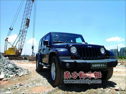 为了感受其越野本性,我们特意寻找了城市里难得一见的泥泞坑洼的工地来试驾。为保持越野本性,前后都采用硬轴式的非独立悬挂,是最坚固的越野车悬挂型式。减震的设定也是预期中的扎实硬朗,但宽厚的轮胎和深厚的底盘造诣很好地弱化了震动传递。因此,进入坑洼路段,即使车身自然地起伏摆动,反复折腾,而其整体刚性又让人觉得并不危险,让人感觉乐趣非凡;循环球式液压助力转向也是为越野而量身定做的,转向轻盈回馈力也不大,方向盘的指向性也很精准。充沛的动力和高效的分时四驱系统,让人可以轻松面对前进路上的每一道阻碍。内心强大的自我慢慢膨胀,有骑着战马去战斗的感觉。天下无敌,无欲则刚。