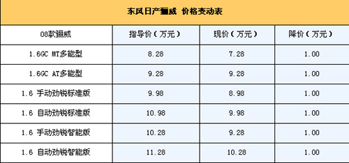 近日,我们从北京地区的一些东风日产经销商处了解到,骊威目前全系优惠1万元。详情下表。