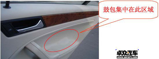 质量问题一:新宝来左、右后车门内护板的蒙皮中部鼓包