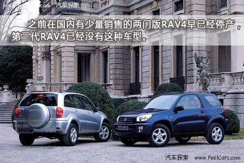 由于RAV4在美国和欧洲地区都有销售,考虑到欧洲消费者的用车习惯之前的两代产品均有两门版。而从2006年开始生产的第三代产品开始就已经不再提供两门车型,因此可以肯定国内也不会再有两门版RAV4销售了。