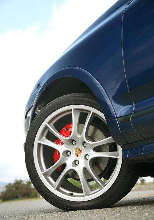 不仅车头造型类似卡宴Turbo,视角转到车后侧,巨幅的21寸卡宴Sport五幅双肋式轮毂,加上标配的295/35 R21低扁平跑胎,更是完全与卡宴Turbo平起平坐的运动化好料,其实,上面这些配备全都指向一个目的-“低重心”。不同于出自越野性能考虑的大型SUV,刻意利用高行程悬挂与高扁平比越野胎,增加离地高度与越野极限性。