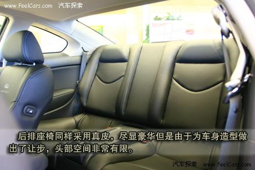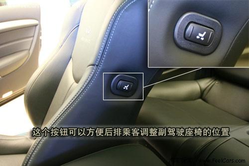 后排乘员可以通过靠背上角的拉手将椅背放到从而更轻松的进入后排。在车内时,则可以按下副驾驶椅背侧面的按钮后可以将座椅整体前移,方便下车。虽然后排座椅的真皮用料同样尽显豪华,但由于为造型做出了牺牲,头部空间非常有限。