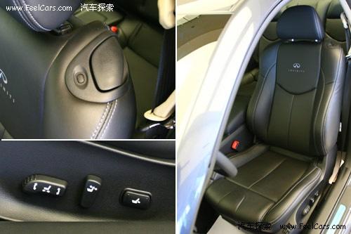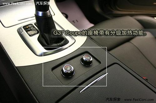 G37 Coupe的座椅显示出英菲尼迪豪华品牌的定位,打孔通风真皮座椅调节功能丰富。驾驶席座椅可以进行14向电动调节,副驾驶席为8向。BOSS音响在国内早已是家喻户晓,在英菲尼迪G37 Coupe上共有11个BOSS扬声器,可以播放6碟CD机或是由娱乐接的信号。
